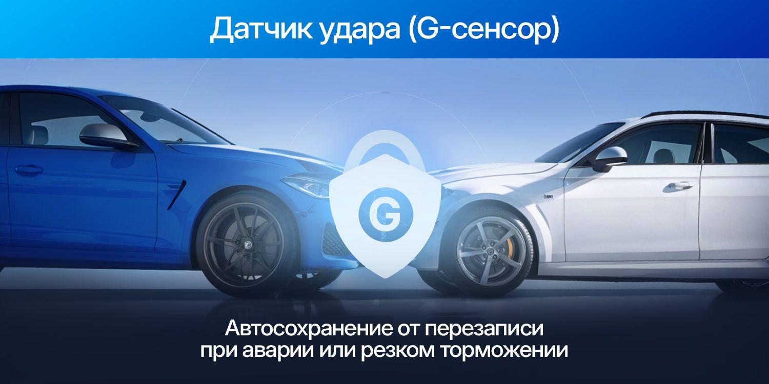 Встроенный G-сенсор мгновенно реагирует на любые резкие воздействия — удар, столкновение, толчок или резкое торможение. В момент срабатывания текущий видеоролик автоматически помечается как защищённый и исключается из циклической перезаписи. Это гарантирует сохранность ключевых кадров происшествия и предотвращает их случайную потерю.