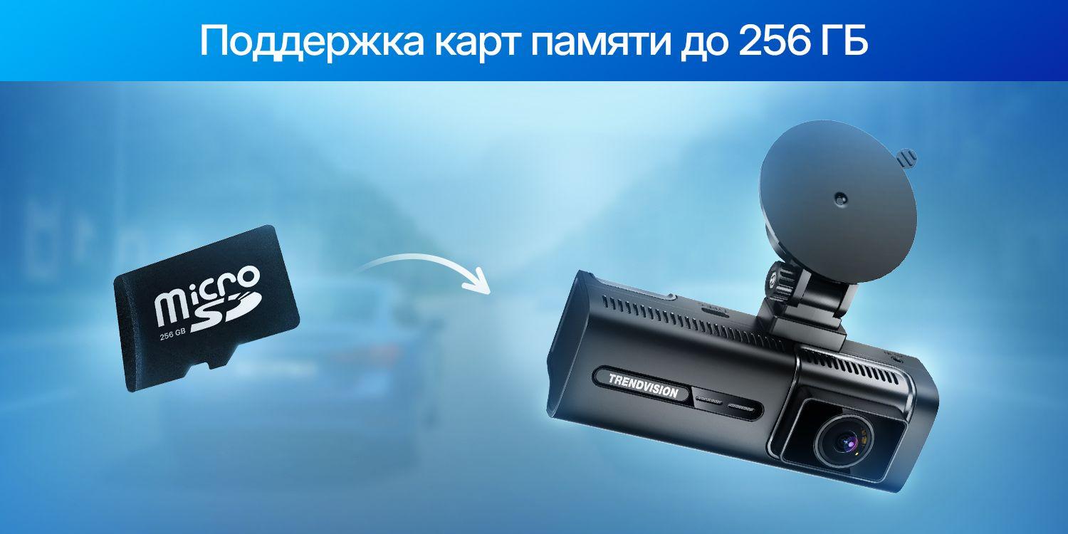 Видеорегистратор поддерживает карты памяти объёмом до 256 ГБ, чего достаточно примерно для суток непрерывной записи. Когда накопитель заполняется, устройство автоматически включает циклическую перезапись: новые файлы записываются поверх самых старых. Это обеспечивает постоянную фиксацию всех событий без необходимости вручную контролировать свободное место на карте памяти.