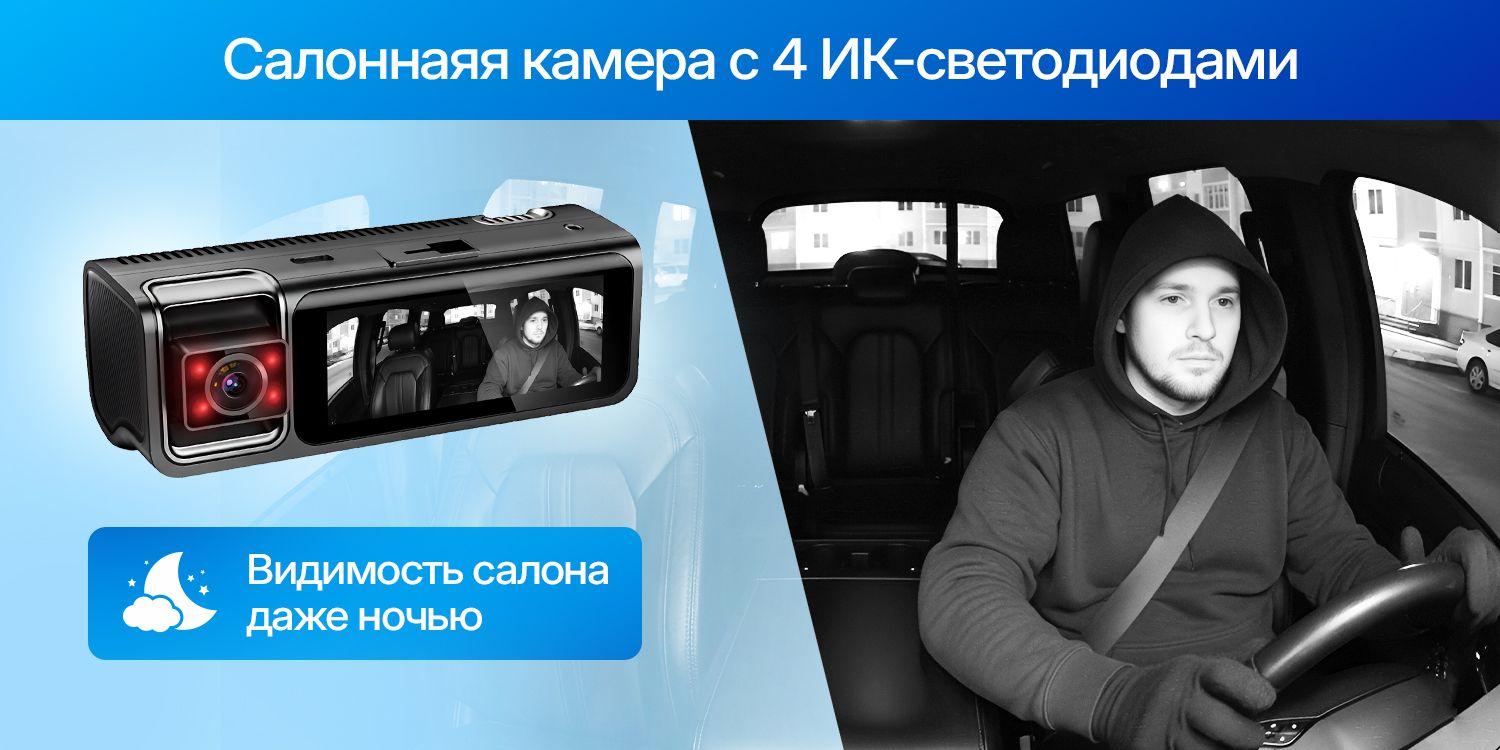 Благодаря четырём ИК-светодиодам камера уверенно снимает даже в полной темноте: лица пассажиров, движения и мелкие детали чётко различимы без какого-либо внешнего освещения.