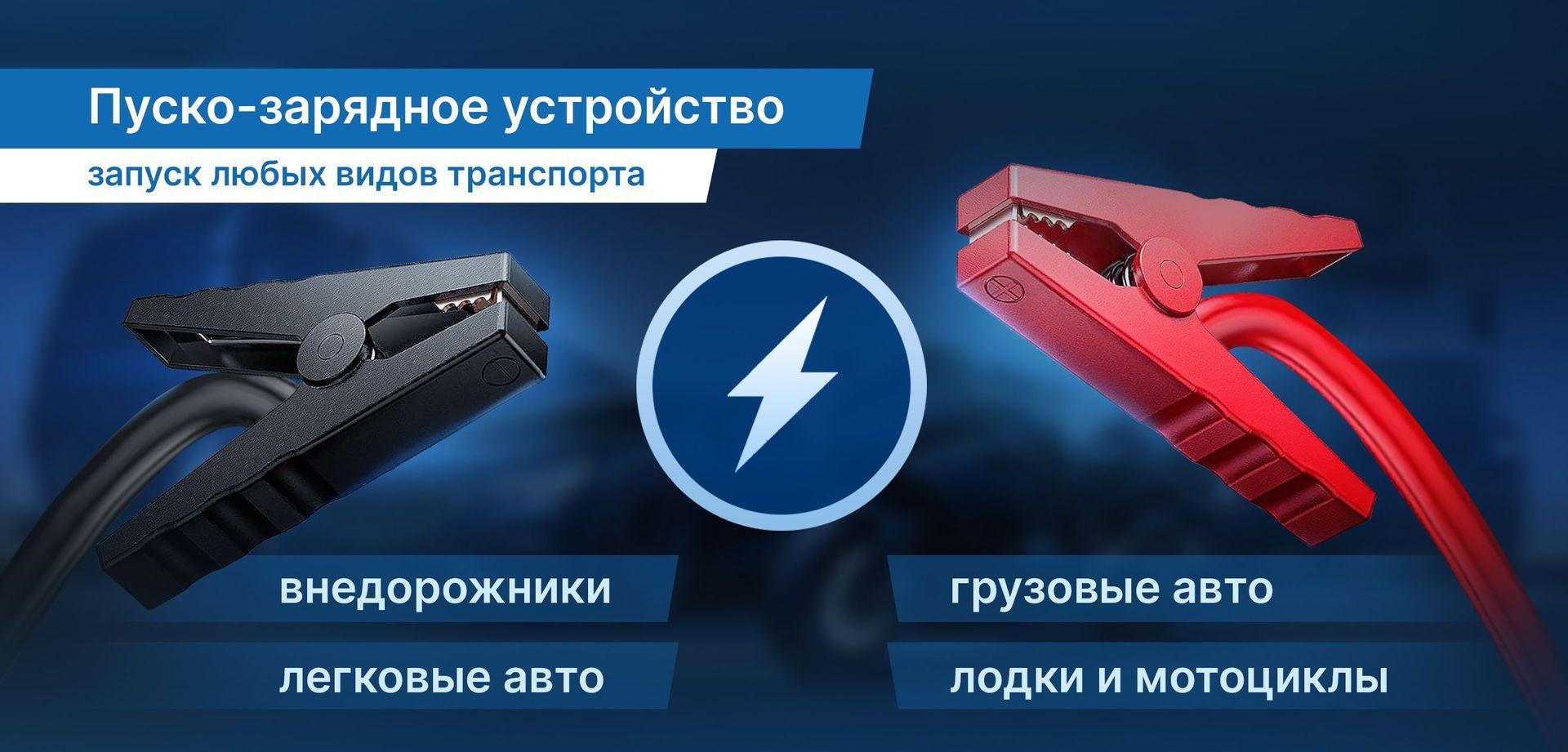 Высокий пусковой ток позволяет легко запустить двигатель даже при полностью разряженной батарее. Устройство совместимо с различными типами транспорта — от легковых автомобилей до крупногабаритной техники — обеспечивая быстрый и надёжный старт в любых условиях, включая сильный мороз или долгий простой машины.