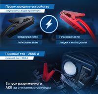 Оснащённый аккумулятором ёмкостью 20 800 мА·ч, он способен запустить двигатель практически любого транспортного средства — даже при полностью разряженной батарее или в условиях тяжёлого зимнего пуска. Встроенный компрессор позволяет быстро и без усилий подкачать колёса автомобиля, а функция powerbank даёт возможность зарядить смартфоны, планшеты и другую электронику в дороге.