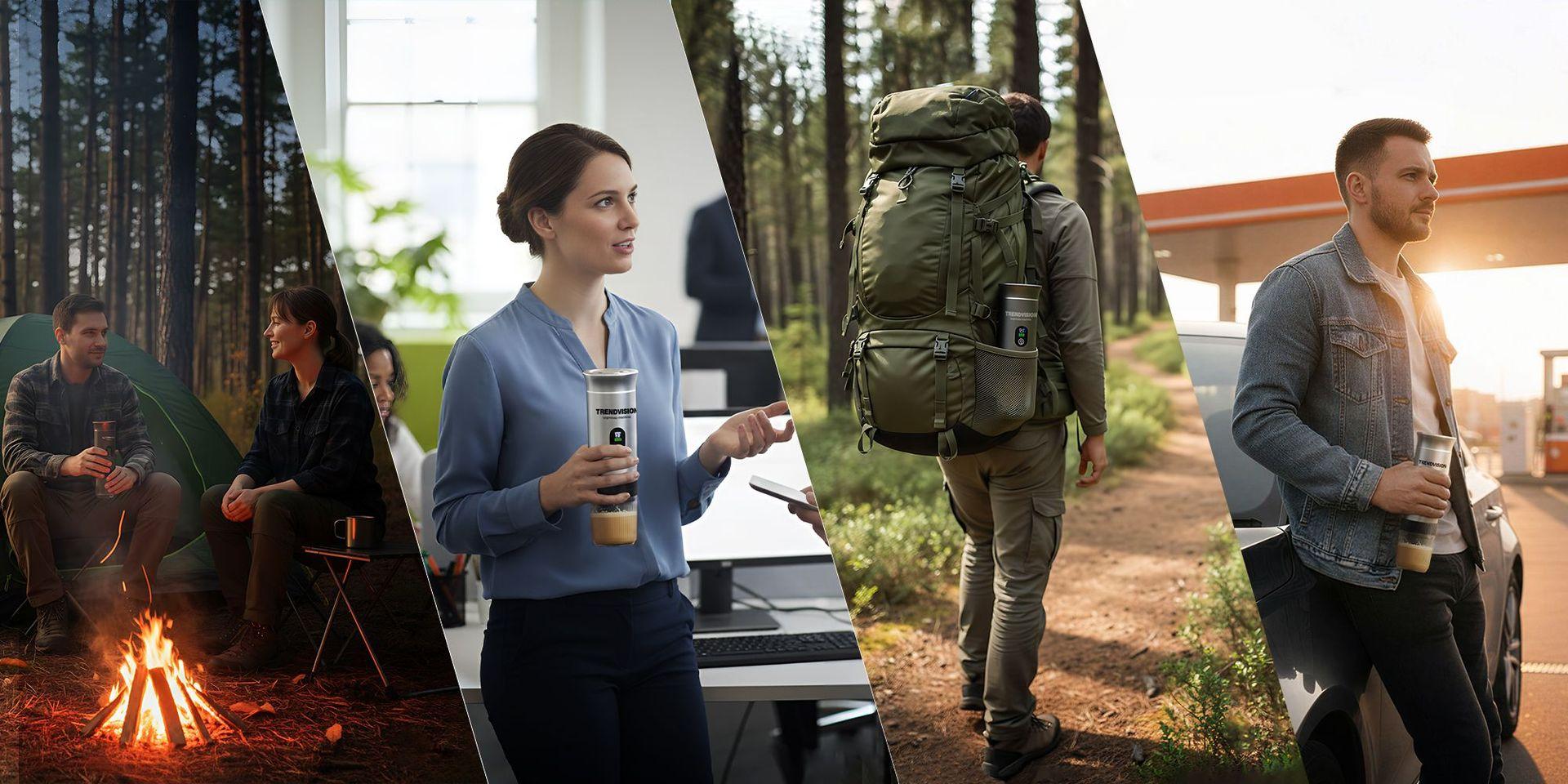 TrendVision Travel Coffee Maker (TCM-240h) (Silver) создана для использования в самых разных сценариях повседневной жизни. Кофемашина одинаково удобна в поездках на автомобиле, во время пеших прогулок и походов, на отдыхе на природе, в офисе или в рабочей обстановке вне дома. Компактные размеры и автономная работа позволяют брать её с собой без ограничений и готовить кофе именно тогда, когда это нужно.
