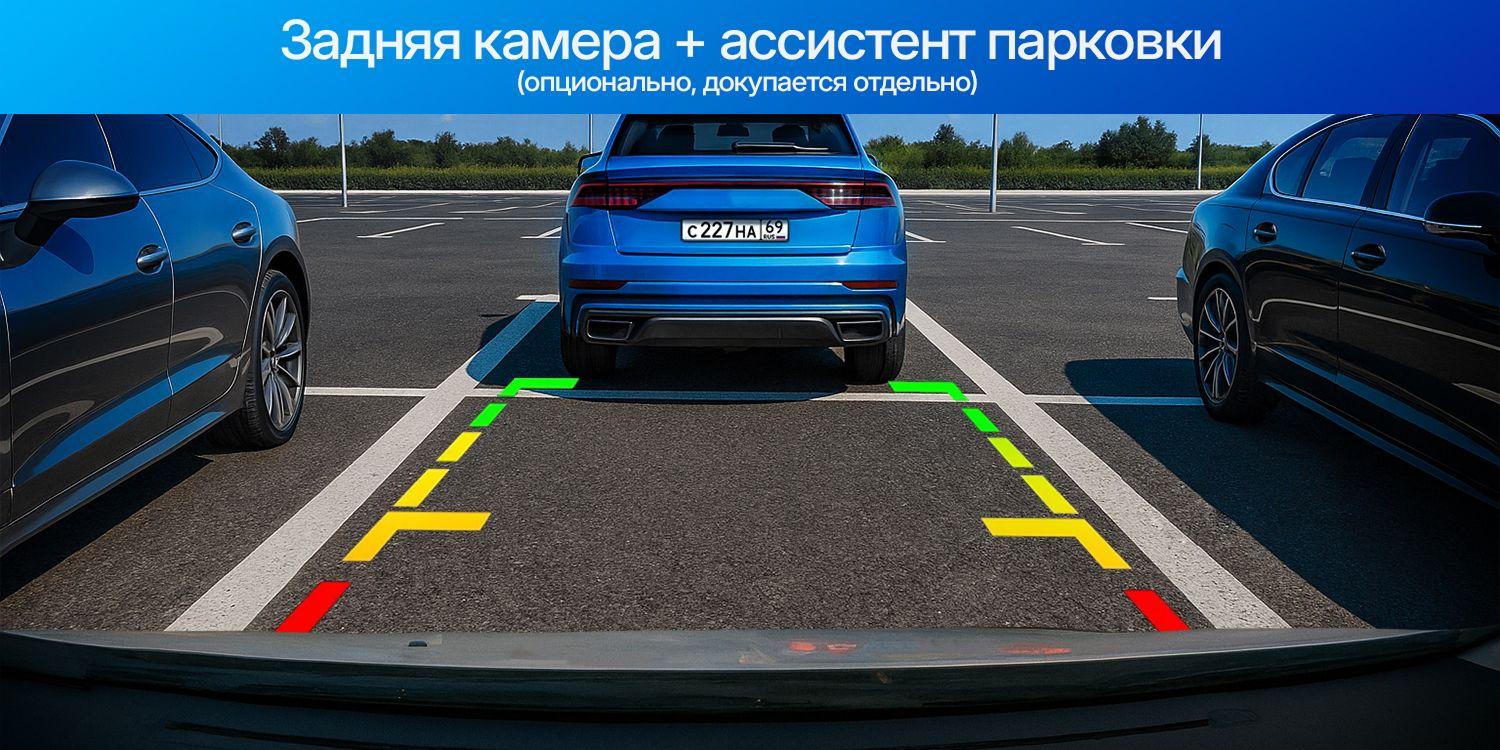 К видеорегистратору можно подключить заднюю камеру (приобретается отдельно), что значительно расширяет его функционал. Она фиксирует дорожную ситуацию позади автомобиля во время движения и помогает при парковке. При подключении камеры к бортовой системе и включении задней передачи на экране автоматически отображается изображение с нанесёнными парковочными линиями, которые позволяют точно определить расстояние до препятствий и безопасно выполнить манёвр.