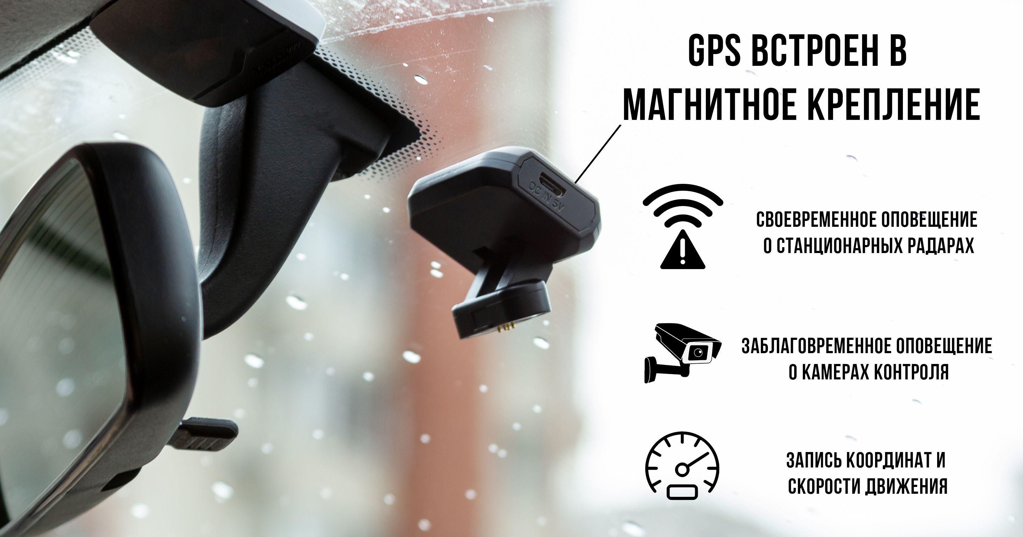В крепеление встроен модуль GPS. Базы радаров и камер обновляются раз в неделю, что позволяет поддерживать их в максимально актуальном состоянии.