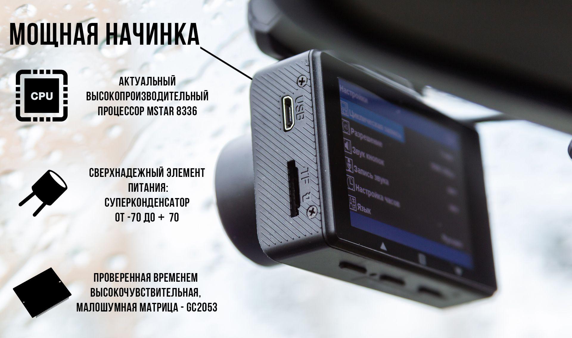 Мощная начинка дает возможность использовать карты памяти до 128 гб. что даст вам возможность сохранить практически 24 часа событий без перезаписи.