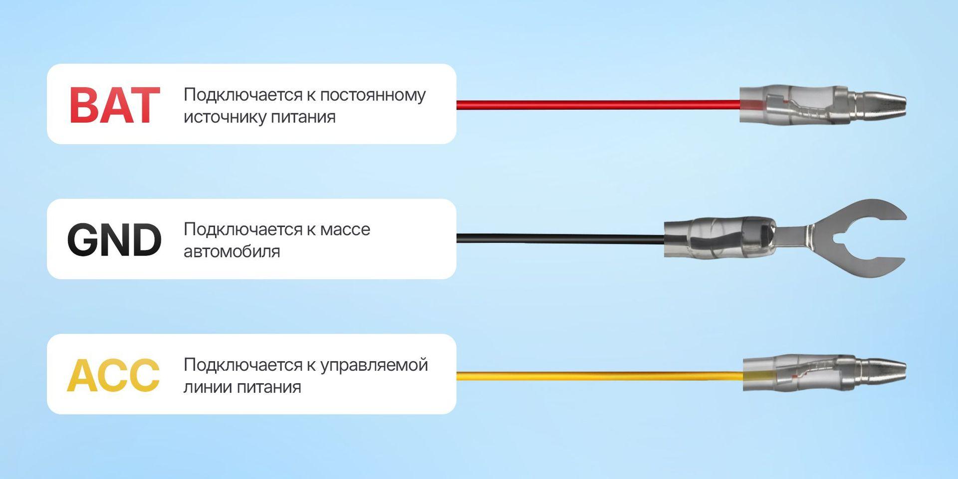 ACC — подключается к управляемой линии питания и отвечает за определение включения зажигания.