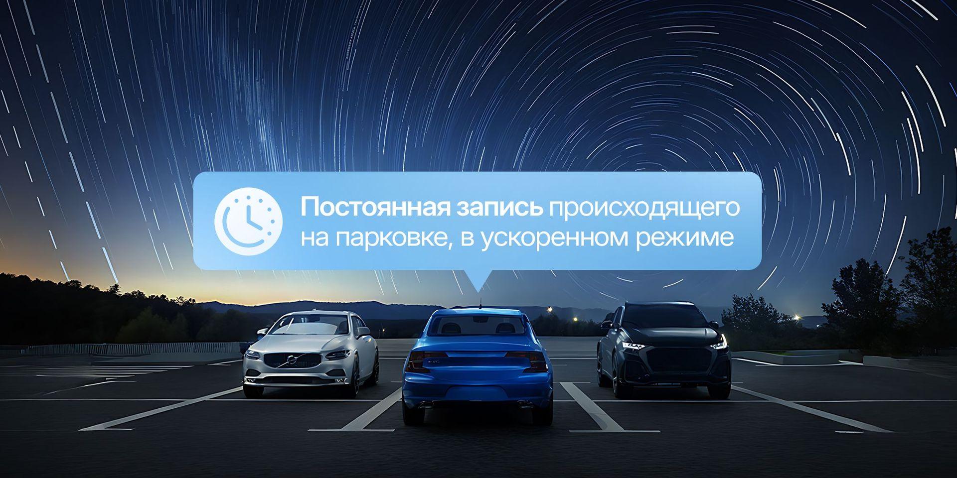 Поддержка парковочного режима позволяет видеорегистратору вести непрерывную фиксацию происходящего на стоянке в ускоренном формате (Таймлапс). Устройство остаётся активным даже при выключенном зажигании, обеспечивая круглосуточный контроль автомобиля без риска разрядки аккумулятора.
