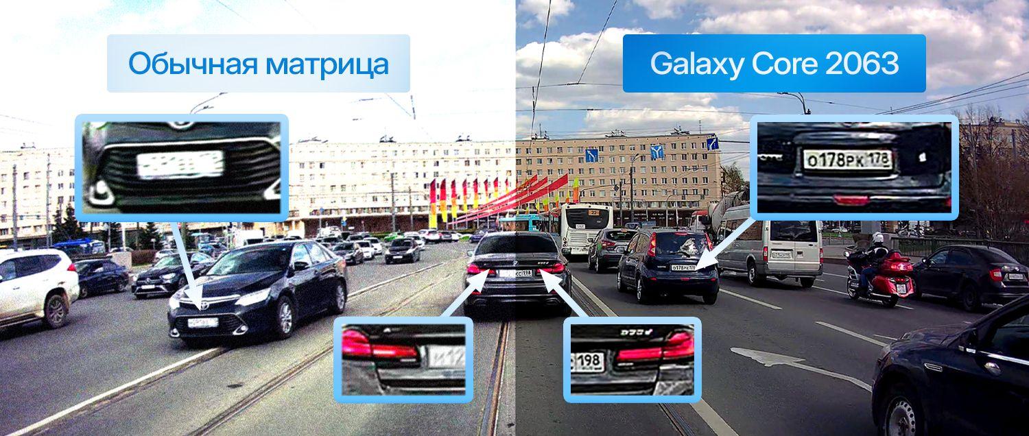 Матрица GalaxyCore обеспечивает высокое качество съёмки в Full HD даже при низком освещении. Все детали, включая номера автомобилей и дорожные знаки, остаются чёткими.